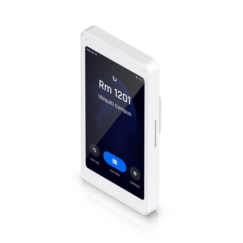 Monitor táctil de 5″ para visualizar y responder llamadas del UniFi Access Intercom dentro del edificio.