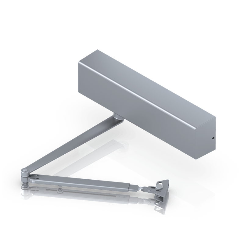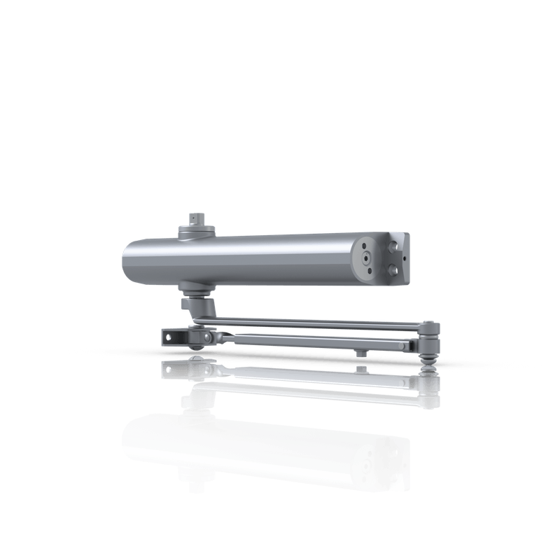 Cierrapuertas de superficie con potencia ajustable (tamaño 1–6) y montaje universal.